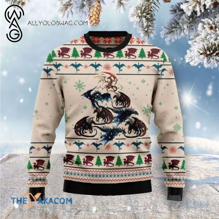 NOTE: [Top-selling] Colorful Dragon Make A Christmas Knitting Pattern Ugly Christmas Sweater