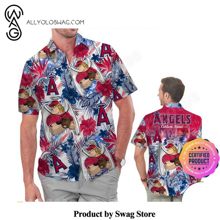 Some details about our product Los Angeles Angels America Flag Tropical Floral MLB Aloha Hawaiian Shirt