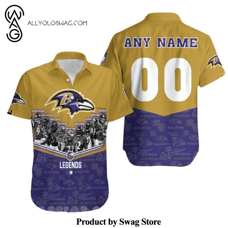 [Top-selling] Baltimore Ravens Legends Champions Team NFL America Football 3D Custom Name Number For Ravens Fans Summer Set Hawaiian Shirt was hand-tailored in the early days of fashion. This might happen in the comfort of one’s own home or at a custom tailor’s business. These stores immediately sprang up all across the islands, especially in plantation towns and Honolulu. Newly accessible fabrics from throughout the world were sold at dry goods stores, including printed silk from Japan, raw silk, batik, and rayon from the United States mainland, and cotton cloth for kimonos and yukatas.Hawaiian history had long been shaped by Asian immigrants, and apparel designs reflected this. Short- and long-sleeved shirts, as well as women’s skirts, were created using pre-printed textiles from China and Japan and were based on Asian clothing styles. These bright blouses and dresses were the forerunners of today’s Aloha attire. On the islands, we say “ono” to describe something that is pleasantly cool.