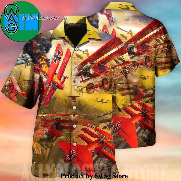 Airplane In The War Style Tropical Hawaiian Shirt was hand-tailored in the early days of fashion. This might happen in the comfort of one’s own home or at a custom tailor’s business. These stores immediately sprang up all across the islands, especially in plantation towns and Honolulu. Newly accessible fabrics from throughout the world were sold at dry goods stores, including printed silk from Japan, raw silk, batik, and rayon from the United States mainland, and cotton cloth for kimonos and yukatas.Hawaiian history had long been shaped by Asian immigrants, and apparel designs reflected this. Short- and long-sleeved shirts, as well as women’s skirts, were created using pre-printed textiles from China and Japan and were based on Asian clothing styles. These bright blouses and dresses were the forerunners of today’s Aloha attire. On the islands, we say “ono” to describe something that is pleasantly cool.