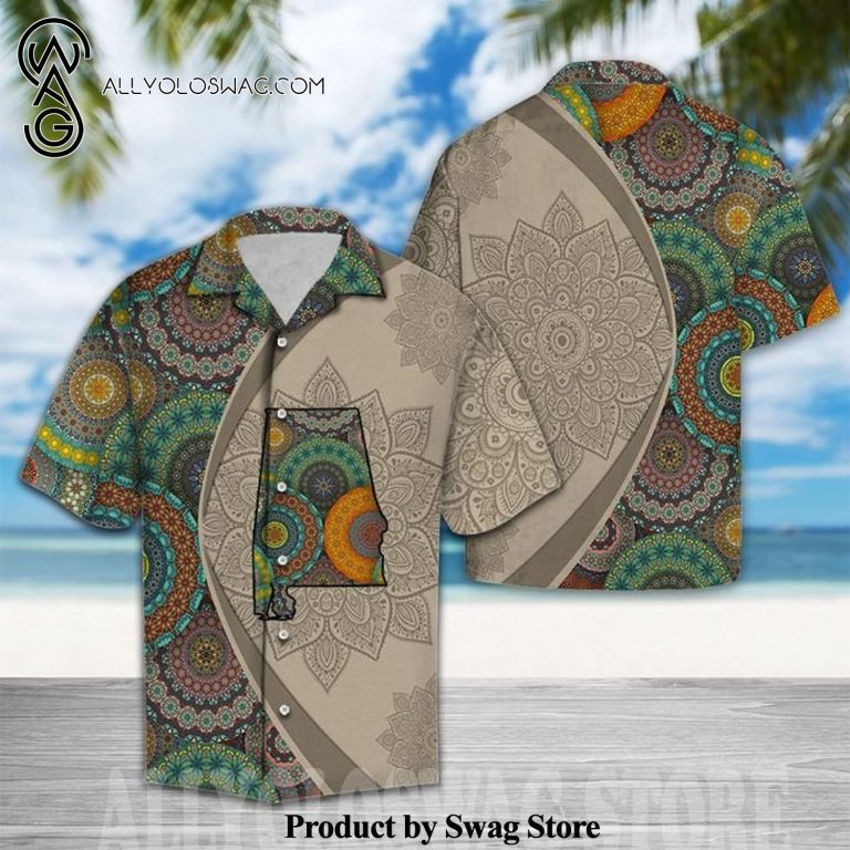 Alabama Mandala For Vacation Hawaiian Shirt was hand-tailored in the early days of fashion. This might happen in the comfort of one’s own home or at a custom tailor’s business. These stores immediately sprang up all across the islands, especially in plantation towns and Honolulu. Newly accessible fabrics from throughout the world were sold at dry goods stores, including printed silk from Japan, raw silk, batik, and rayon from the United States mainland, and cotton cloth for kimonos and yukatas.Hawaiian history had long been shaped by Asian immigrants, and apparel designs reflected this. Short- and long-sleeved shirts, as well as women’s skirts, were created using pre-printed textiles from China and Japan and were based on Asian clothing styles. These bright blouses and dresses were the forerunners of today’s Aloha attire. On the islands, we say “ono” to describe something that is pleasantly cool.