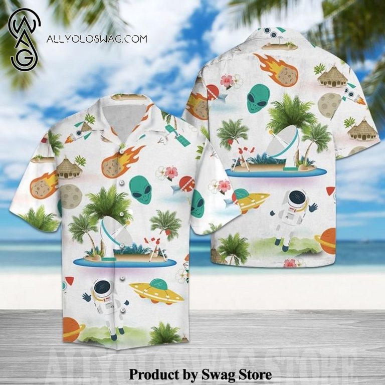 Astronaut On Vacation Holiday Time Hawaiian Shirt was hand-tailored in the early days of fashion. This might happen in the comfort of one’s own home or at a custom tailor’s business. These stores immediately sprang up all across the islands, especially in plantation towns and Honolulu. Newly accessible fabrics from throughout the world were sold at dry goods stores, including printed silk from Japan, raw silk, batik, and rayon from the United States mainland, and cotton cloth for kimonos and yukatas.Hawaiian history had long been shaped by Asian immigrants, and apparel designs reflected this. Short- and long-sleeved shirts, as well as women’s skirts, were created using pre-printed textiles from China and Japan and were based on Asian clothing styles. These bright blouses and dresses were the forerunners of today’s Aloha attire. On the islands, we say “ono” to describe something that is pleasantly cool.