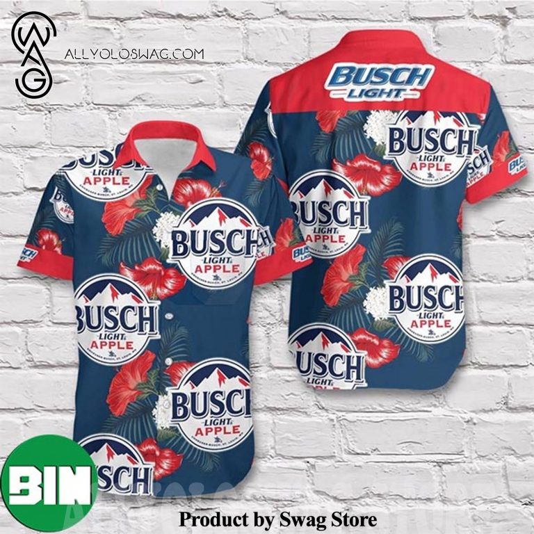 Busch Light Beer Red Apple Tropical Hawaiian Shirt