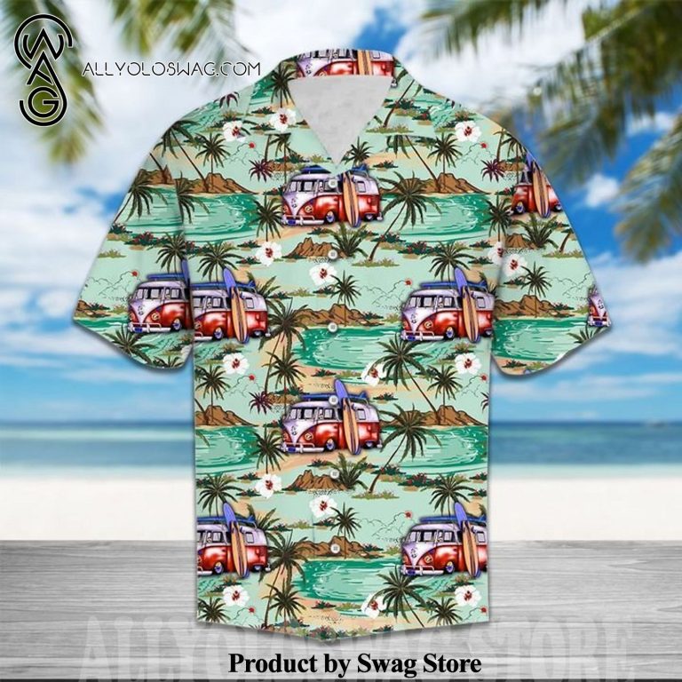 Caravan Beach All Over Print Hawaiian Shirt was hand-tailored in the early days of fashion. This might happen in the comfort of one’s own home or at a custom tailor’s business. These stores immediately sprang up all across the islands, especially in plantation towns and Honolulu. Newly accessible fabrics from throughout the world were sold at dry goods stores, including printed silk from Japan, raw silk, batik, and rayon from the United States mainland, and cotton cloth for kimonos and yukatas.Hawaiian history had long been shaped by Asian immigrants, and apparel designs reflected this. Short- and long-sleeved shirts, as well as women’s skirts, were created using pre-printed textiles from China and Japan and were based on Asian clothing styles. These bright blouses and dresses were the forerunners of today’s Aloha attire. On the islands, we say “ono” to describe something that is pleasantly cool.