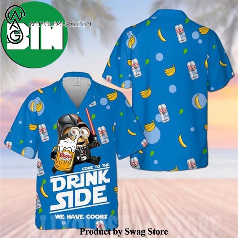 Coors Light Minion Drink Side Summer Vibes Hawaiian Shirt was hand-tailored in the early days of fashion. This might happen in the comfort of one’s own home or at a custom tailor’s business. These stores immediately sprang up all across the islands, especially in plantation towns and Honolulu. Newly accessible fabrics from throughout the world were sold at dry goods stores, including printed silk from Japan, raw silk, batik, and rayon from the United States mainland, and cotton cloth for kimonos and yukatas.Hawaiian history had long been shaped by Asian immigrants, and apparel designs reflected this. Short- and long-sleeved shirts, as well as women’s skirts, were created using pre-printed textiles from China and Japan and were based on Asian clothing styles. These bright blouses and dresses were the forerunners of today’s Aloha attire. On the islands, we say “ono” to describe something that is pleasantly cool.