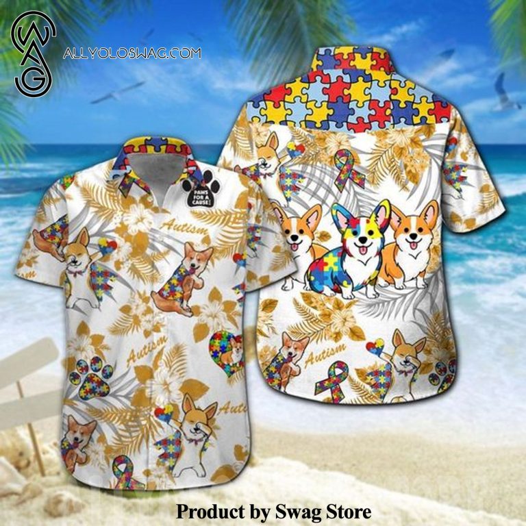 Corgi Autism For Vacation Hawaiian Shirt was hand-tailored in the early days of fashion. This might happen in the comfort of one’s own home or at a custom tailor’s business. These stores immediately sprang up all across the islands, especially in plantation towns and Honolulu. Newly accessible fabrics from throughout the world were sold at dry goods stores, including printed silk from Japan, raw silk, batik, and rayon from the United States mainland, and cotton cloth for kimonos and yukatas.Hawaiian history had long been shaped by Asian immigrants, and apparel designs reflected this. Short- and long-sleeved shirts, as well as women’s skirts, were created using pre-printed textiles from China and Japan and were based on Asian clothing styles. These bright blouses and dresses were the forerunners of today’s Aloha attire. On the islands, we say “ono” to describe something that is pleasantly cool.