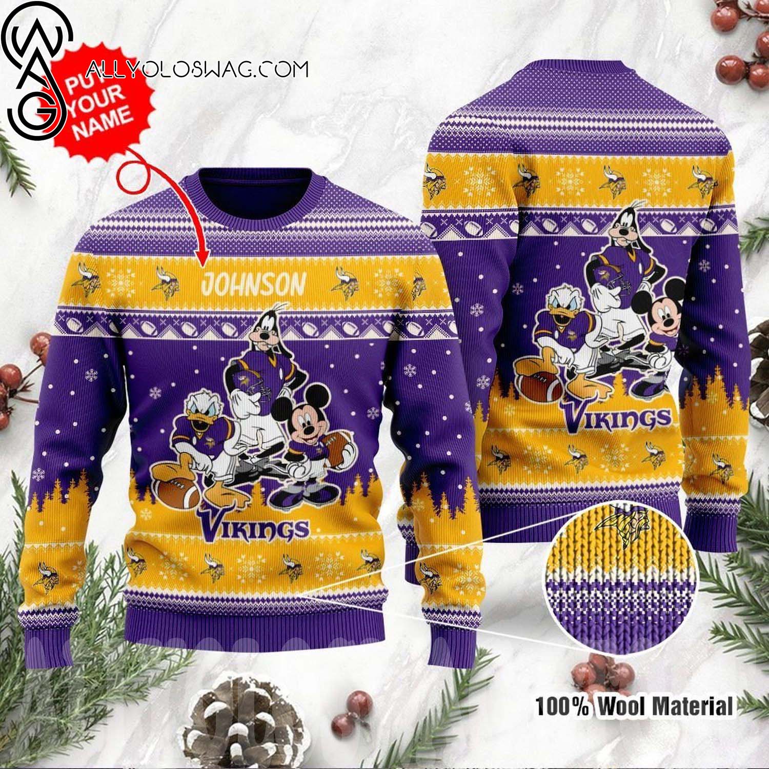 Custom Minnesota Vikings Disney Donald Duck Mickey Mouse Goofy Ugly Christmas Sweater,