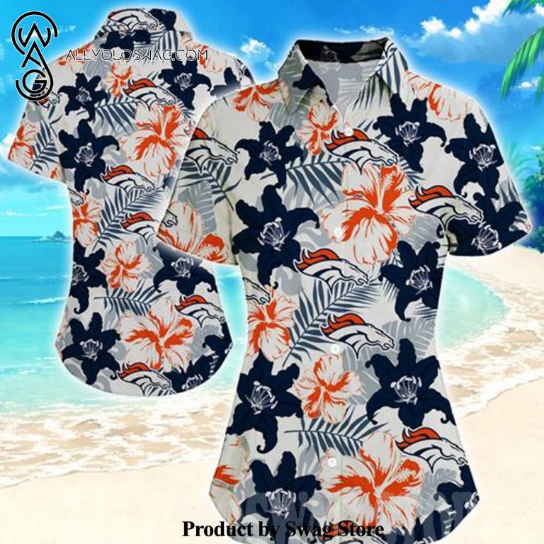 Denver Broncos Women All Over Print Hawaiian Shirt was hand-tailored in the early days of fashion. This might happen in the comfort of one’s own home or at a custom tailor’s business. These stores immediately sprang up all across the islands, especially in plantation towns and Honolulu. Newly accessible fabrics from throughout the world were sold at dry goods stores, including printed silk from Japan, raw silk, batik, and rayon from the United States mainland, and cotton cloth for kimonos and yukatas.Hawaiian history had long been shaped by Asian immigrants, and apparel designs reflected this. Short- and long-sleeved shirts, as well as women’s skirts, were created using pre-printed textiles from China and Japan and were based on Asian clothing styles. These bright blouses and dresses were the forerunners of today’s Aloha attire. On the islands, we say “ono” to describe something that is pleasantly cool.