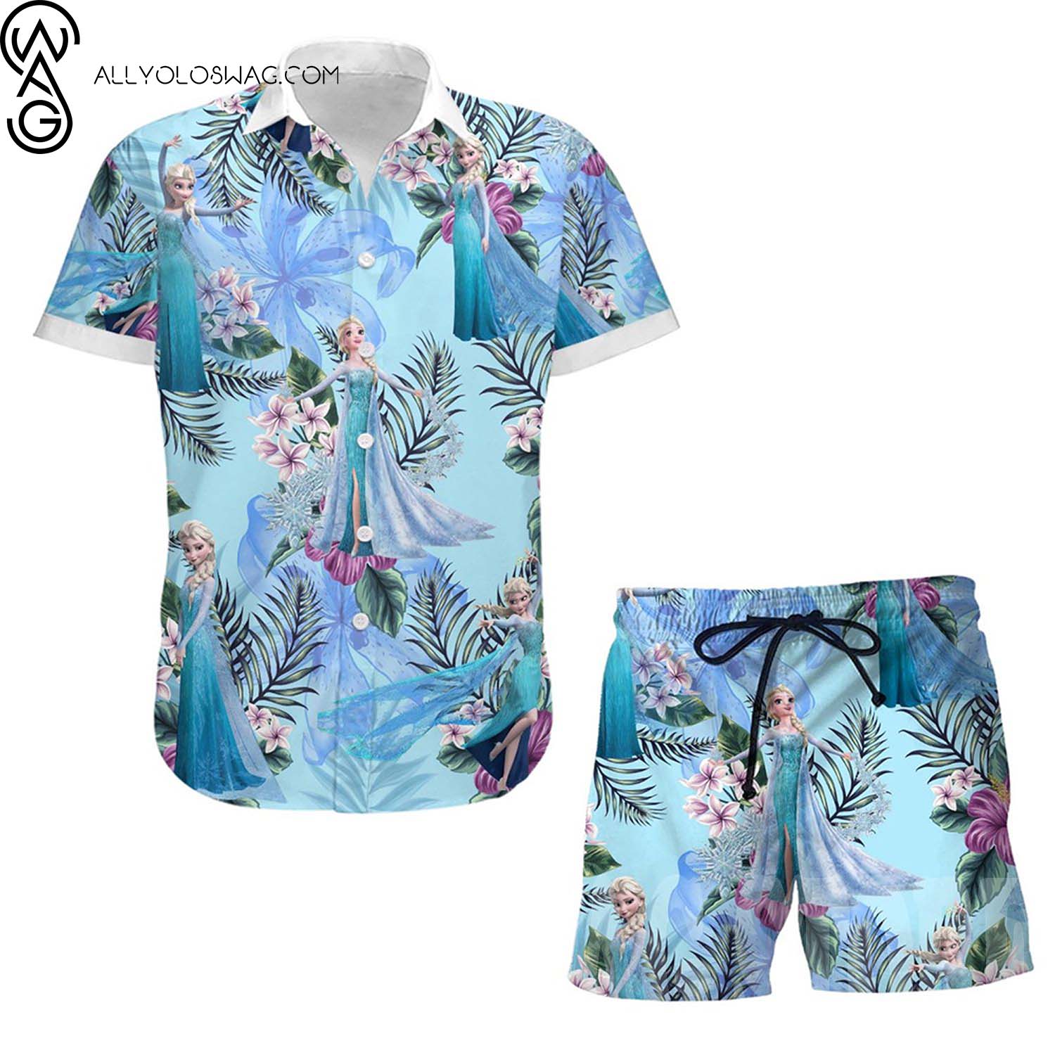 Disney Gift Frozen Elsa Full Print Hawaii Shirt And Beach Shorts,