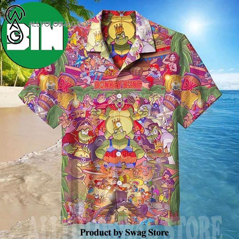 Donkey Kong Summer Vibes Hawaiian Shirt was hand-tailored in the early days of fashion. This might happen in the comfort of one’s own home or at a custom tailor’s business. These stores immediately sprang up all across the islands, especially in plantation towns and Honolulu. Newly accessible fabrics from throughout the world were sold at dry goods stores, including printed silk from Japan, raw silk, batik, and rayon from the United States mainland, and cotton cloth for kimonos and yukatas.Hawaiian history had long been shaped by Asian immigrants, and apparel designs reflected this. Short- and long-sleeved shirts, as well as women’s skirts, were created using pre-printed textiles from China and Japan and were based on Asian clothing styles. These bright blouses and dresses were the forerunners of today’s Aloha attire. On the islands, we say “ono” to describe something that is pleasantly cool.