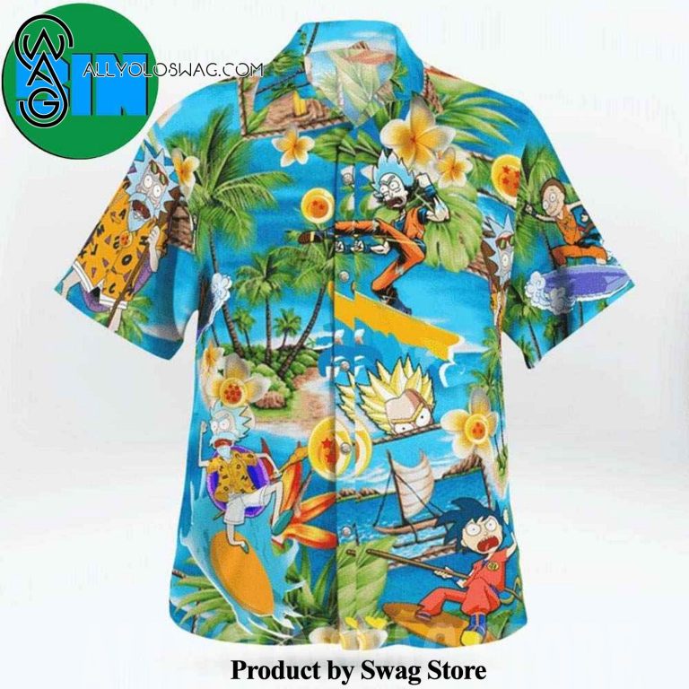 Dragon Ball Funny x Rick And Morty Summer Vibes Hawaiian Shirt was hand-tailored in the early days of fashion. This might happen in the comfort of one’s own home or at a custom tailor’s business. These stores immediately sprang up all across the islands, especially in plantation towns and Honolulu. Newly accessible fabrics from throughout the world were sold at dry goods stores, including printed silk from Japan, raw silk, batik, and rayon from the United States mainland, and cotton cloth for kimonos and yukatas.Hawaiian history had long been shaped by Asian immigrants, and apparel designs reflected this. Short- and long-sleeved shirts, as well as women’s skirts, were created using pre-printed textiles from China and Japan and were based on Asian clothing styles. These bright blouses and dresses were the forerunners of today’s Aloha attire. On the islands, we say “ono” to describe something that is pleasantly cool.