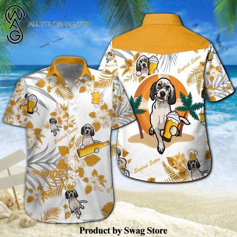 English Setter Beer Full Printing Hawaiian Shirt was hand-tailored in the early days of fashion. This might happen in the comfort of one’s own home or at a custom tailor’s business. These stores immediately sprang up all across the islands, especially in plantation towns and Honolulu. Newly accessible fabrics from throughout the world were sold at dry goods stores, including printed silk from Japan, raw silk, batik, and rayon from the United States mainland, and cotton cloth for kimonos and yukatas.Hawaiian history had long been shaped by Asian immigrants, and apparel designs reflected this. Short- and long-sleeved shirts, as well as women’s skirts, were created using pre-printed textiles from China and Japan and were based on Asian clothing styles. These bright blouses and dresses were the forerunners of today’s Aloha attire. On the islands, we say “ono” to describe something that is pleasantly cool.