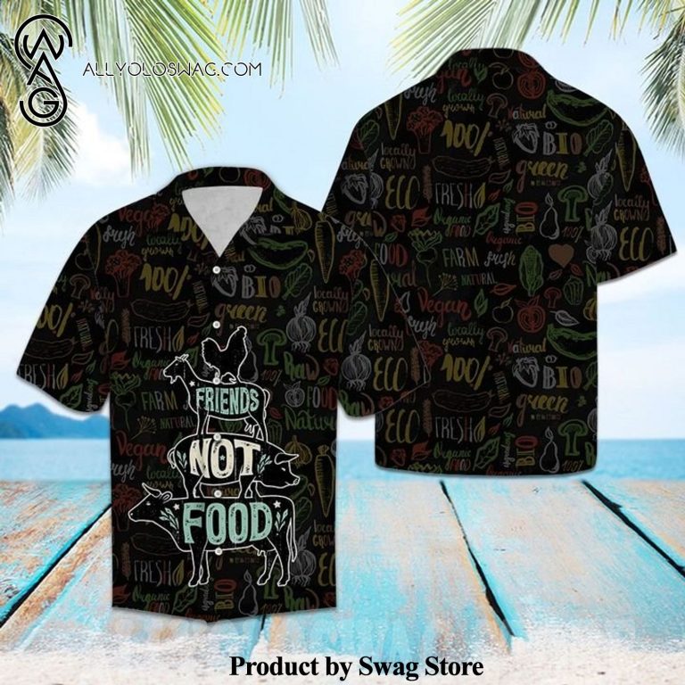Friends Not Food Vegan Vacation Time Hawaiian Shirt was hand-tailored in the early days of fashion. This might happen in the comfort of one’s own home or at a custom tailor’s business. These stores immediately sprang up all across the islands, especially in plantation towns and Honolulu. Newly accessible fabrics from throughout the world were sold at dry goods stores, including printed silk from Japan, raw silk, batik, and rayon from the United States mainland, and cotton cloth for kimonos and yukatas.Hawaiian history had long been shaped by Asian immigrants, and apparel designs reflected this. Short- and long-sleeved shirts, as well as women’s skirts, were created using pre-printed textiles from China and Japan and were based on Asian clothing styles. These bright blouses and dresses were the forerunners of today’s Aloha attire. On the islands, we say “ono” to describe something that is pleasantly cool.