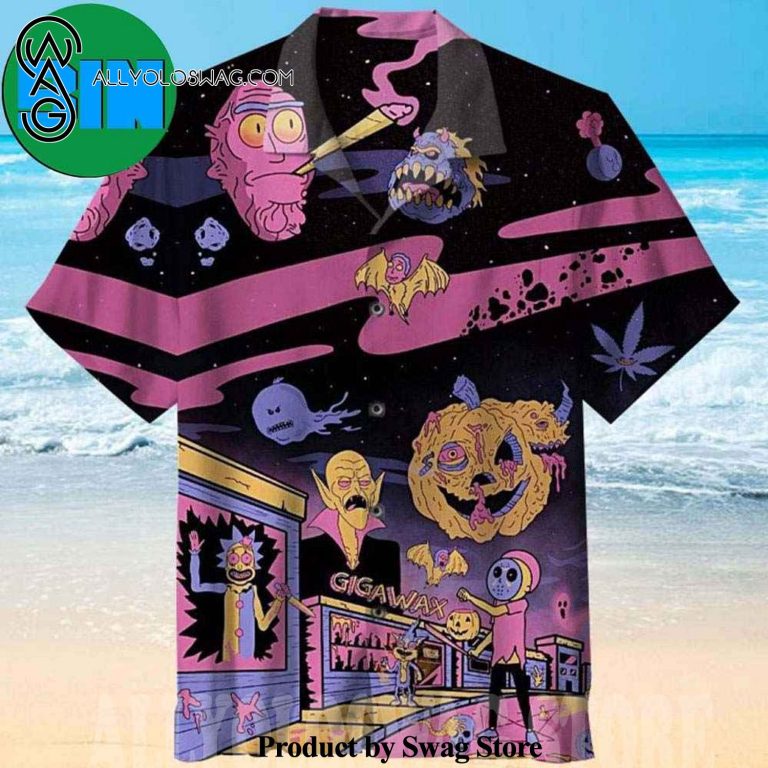 Funny Universe Happy Halloween Rick And Morty Summer Vibes Hawaiian Shirt was hand-tailored in the early days of fashion. This might happen in the comfort of one’s own home or at a custom tailor’s business. These stores immediately sprang up all across the islands, especially in plantation towns and Honolulu. Newly accessible fabrics from throughout the world were sold at dry goods stores, including printed silk from Japan, raw silk, batik, and rayon from the United States mainland, and cotton cloth for kimonos and yukatas.Hawaiian history had long been shaped by Asian immigrants, and apparel designs reflected this. Short- and long-sleeved shirts, as well as women’s skirts, were created using pre-printed textiles from China and Japan and were based on Asian clothing styles. These bright blouses and dresses were the forerunners of today’s Aloha attire. On the islands, we say “ono” to describe something that is pleasantly cool.