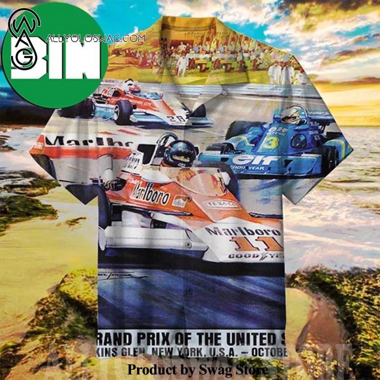 Grand Prix Of The United States Summer Vibes Hawaiian Shirt was hand-tailored in the early days of fashion. This might happen in the comfort of one’s own home or at a custom tailor’s business. These stores immediately sprang up all across the islands, especially in plantation towns and Honolulu. Newly accessible fabrics from throughout the world were sold at dry goods stores, including printed silk from Japan, raw silk, batik, and rayon from the United States mainland, and cotton cloth for kimonos and yukatas.Hawaiian history had long been shaped by Asian immigrants, and apparel designs reflected this. Short- and long-sleeved shirts, as well as women’s skirts, were created using pre-printed textiles from China and Japan and were based on Asian clothing styles. These bright blouses and dresses were the forerunners of today’s Aloha attire. On the islands, we say “ono” to describe something that is pleasantly cool.