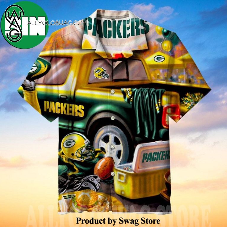 Green Bay Packers NFL Team Summer Vibes Hawaiian Shirt was hand-tailored in the early days of fashion. This might happen in the comfort of one’s own home or at a custom tailor’s business. These stores immediately sprang up all across the islands, especially in plantation towns and Honolulu. Newly accessible fabrics from throughout the world were sold at dry goods stores, including printed silk from Japan, raw silk, batik, and rayon from the United States mainland, and cotton cloth for kimonos and yukatas.Hawaiian history had long been shaped by Asian immigrants, and apparel designs reflected this. Short- and long-sleeved shirts, as well as women’s skirts, were created using pre-printed textiles from China and Japan and were based on Asian clothing styles. These bright blouses and dresses were the forerunners of today’s Aloha attire. On the islands, we say “ono” to describe something that is pleasantly cool.