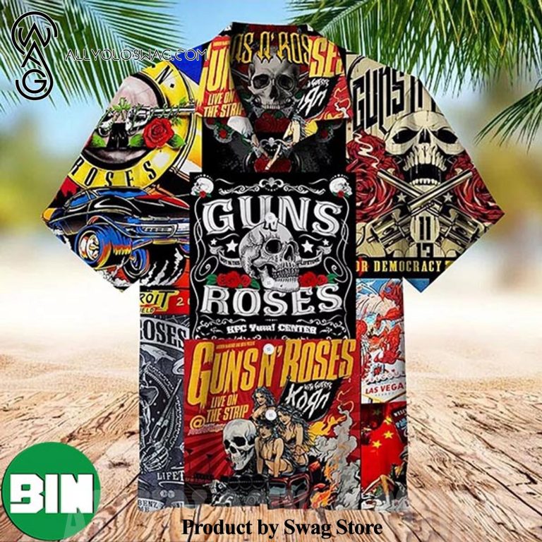 Guns N Roses Creative Collage Summer Vibes Hawaiian Shirt was hand-tailored in the early days of fashion. This might happen in the comfort of one’s own home or at a custom tailor’s business. These stores immediately sprang up all across the islands, especially in plantation towns and Honolulu. Newly accessible fabrics from throughout the world were sold at dry goods stores, including printed silk from Japan, raw silk, batik, and rayon from the United States mainland, and cotton cloth for kimonos and yukatas.Hawaiian history had long been shaped by Asian immigrants, and apparel designs reflected this. Short- and long-sleeved shirts, as well as women’s skirts, were created using pre-printed textiles from China and Japan and were based on Asian clothing styles. These bright blouses and dresses were the forerunners of today’s Aloha attire. On the islands, we say “ono” to describe something that is pleasantly cool.