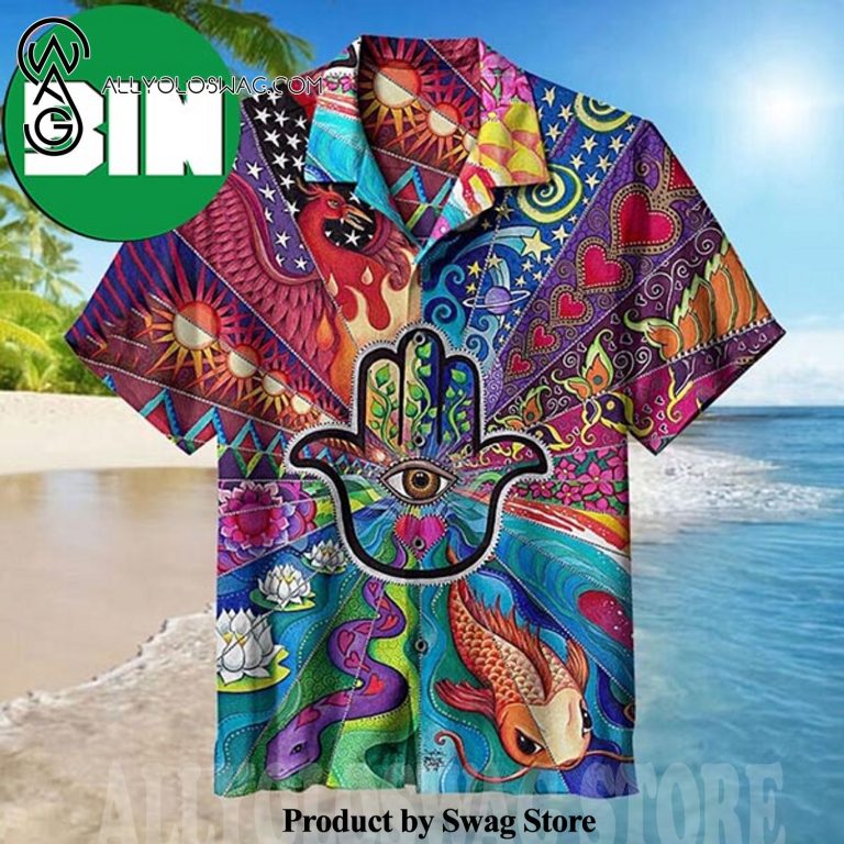 Hamsa Art Summer Vibes Hawaiian Shirt was hand-tailored in the early days of fashion. This might happen in the comfort of one’s own home or at a custom tailor’s business. These stores immediately sprang up all across the islands, especially in plantation towns and Honolulu. Newly accessible fabrics from throughout the world were sold at dry goods stores, including printed silk from Japan, raw silk, batik, and rayon from the United States mainland, and cotton cloth for kimonos and yukatas.Hawaiian history had long been shaped by Asian immigrants, and apparel designs reflected this. Short- and long-sleeved shirts, as well as women’s skirts, were created using pre-printed textiles from China and Japan and were based on Asian clothing styles. These bright blouses and dresses were the forerunners of today’s Aloha attire. On the islands, we say “ono” to describe something that is pleasantly cool.