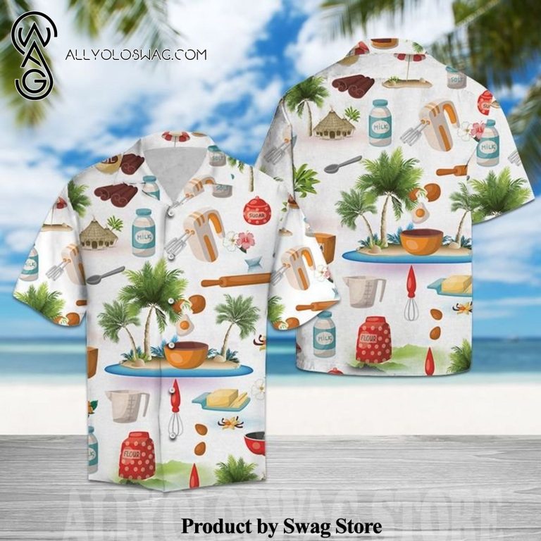 Holiday Baking Summer Time Hawaiian Shirt was hand-tailored in the early days of fashion. This might happen in the comfort of one’s own home or at a custom tailor’s business. These stores immediately sprang up all across the islands, especially in plantation towns and Honolulu. Newly accessible fabrics from throughout the world were sold at dry goods stores, including printed silk from Japan, raw silk, batik, and rayon from the United States mainland, and cotton cloth for kimonos and yukatas.Hawaiian history had long been shaped by Asian immigrants, and apparel designs reflected this. Short- and long-sleeved shirts, as well as women’s skirts, were created using pre-printed textiles from China and Japan and were based on Asian clothing styles. These bright blouses and dresses were the forerunners of today’s Aloha attire. On the islands, we say “ono” to describe something that is pleasantly cool.