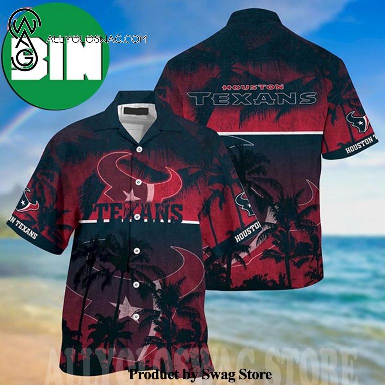 Houston Texans Palm Tree Summer Vibes Hawaiian Shirt was hand-tailored in the early days of fashion. This might happen in the comfort of one’s own home or at a custom tailor’s business. These stores immediately sprang up all across the islands, especially in plantation towns and Honolulu. Newly accessible fabrics from throughout the world were sold at dry goods stores, including printed silk from Japan, raw silk, batik, and rayon from the United States mainland, and cotton cloth for kimonos and yukatas.Hawaiian history had long been shaped by Asian immigrants, and apparel designs reflected this. Short- and long-sleeved shirts, as well as women’s skirts, were created using pre-printed textiles from China and Japan and were based on Asian clothing styles. These bright blouses and dresses were the forerunners of today’s Aloha attire. On the islands, we say “ono” to describe something that is pleasantly cool.