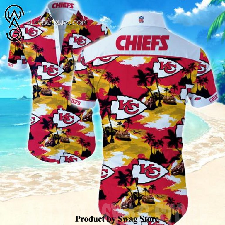 Kansas City Chiefs Coconut Tree Full Printing Hawaiian Shirt was hand-tailored in the early days of fashion. This might happen in the comfort of one’s own home or at a custom tailor’s business. These stores immediately sprang up all across the islands, especially in plantation towns and Honolulu. Newly accessible fabrics from throughout the world were sold at dry goods stores, including printed silk from Japan, raw silk, batik, and rayon from the United States mainland, and cotton cloth for kimonos and yukatas.Hawaiian history had long been shaped by Asian immigrants, and apparel designs reflected this. Short- and long-sleeved shirts, as well as women’s skirts, were created using pre-printed textiles from China and Japan and were based on Asian clothing styles. These bright blouses and dresses were the forerunners of today’s Aloha attire. On the islands, we say “ono” to describe something that is pleasantly cool.