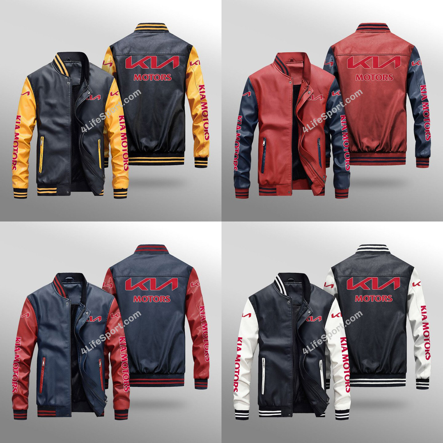 - This leather bomber jacket with a high collar, full-zip front, and side seam pockets works as a finishing touch to a stylish cool-weather look