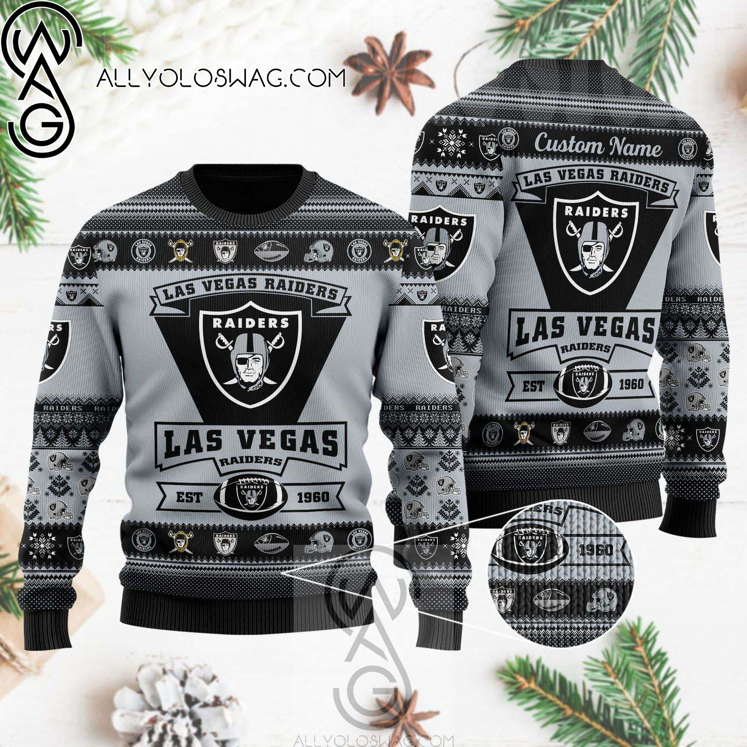 Las Vegas Raiders Football Team Logo Custom Name Knitting Pattern Ugly Christmas Sweater,