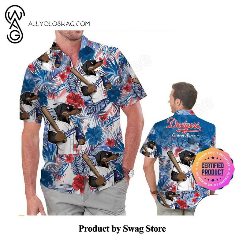 Some details about our product Los Angeles Dodgers America Flag Tropical Floral MLB Aloha Hawaiian Shirt