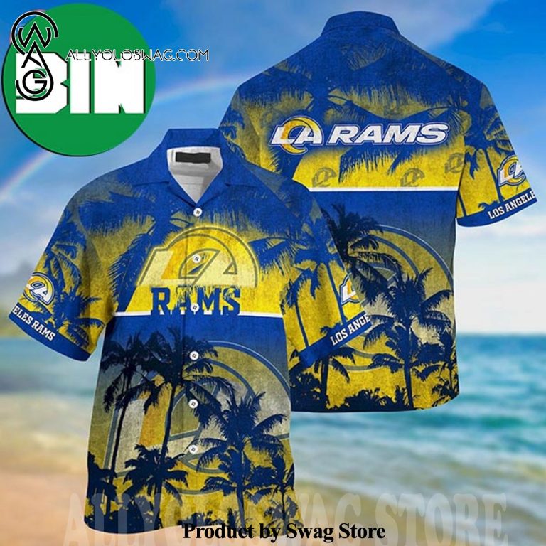 Los Angeles Rams Palm Tree Summer Vibes Hawaiian Shirt was hand-tailored in the early days of fashion. This might happen in the comfort of one’s own home or at a custom tailor’s business. These stores immediately sprang up all across the islands, especially in plantation towns and Honolulu. Newly accessible fabrics from throughout the world were sold at dry goods stores, including printed silk from Japan, raw silk, batik, and rayon from the United States mainland, and cotton cloth for kimonos and yukatas.Hawaiian history had long been shaped by Asian immigrants, and apparel designs reflected this. Short- and long-sleeved shirts, as well as women’s skirts, were created using pre-printed textiles from China and Japan and were based on Asian clothing styles. These bright blouses and dresses were the forerunners of today’s Aloha attire. On the islands, we say “ono” to describe something that is pleasantly cool.