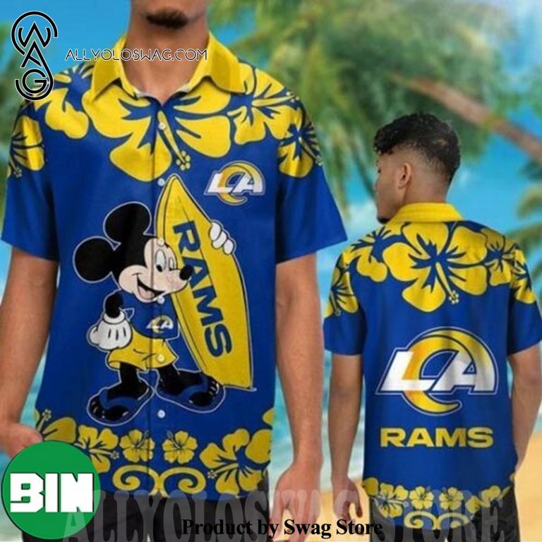 Men Football Floral Aloha Los Angeles Rams Summer Vacation Hawaiian Shirt was hand-tailored in the early days of fashion. This might happen in the comfort of one’s own home or at a custom tailor’s business. These stores immediately sprang up all across the islands, especially in plantation towns and Honolulu. Newly accessible fabrics from throughout the world were sold at dry goods stores, including printed silk from Japan, raw silk, batik, and rayon from the United States mainland, and cotton cloth for kimonos and yukatas.Hawaiian history had long been shaped by Asian immigrants, and apparel designs reflected this. Short- and long-sleeved shirts, as well as women’s skirts, were created using pre-printed textiles from China and Japan and were based on Asian clothing styles. These bright blouses and dresses were the forerunners of today’s Aloha attire. On the islands, we say “ono” to describe something that is pleasantly cool.
