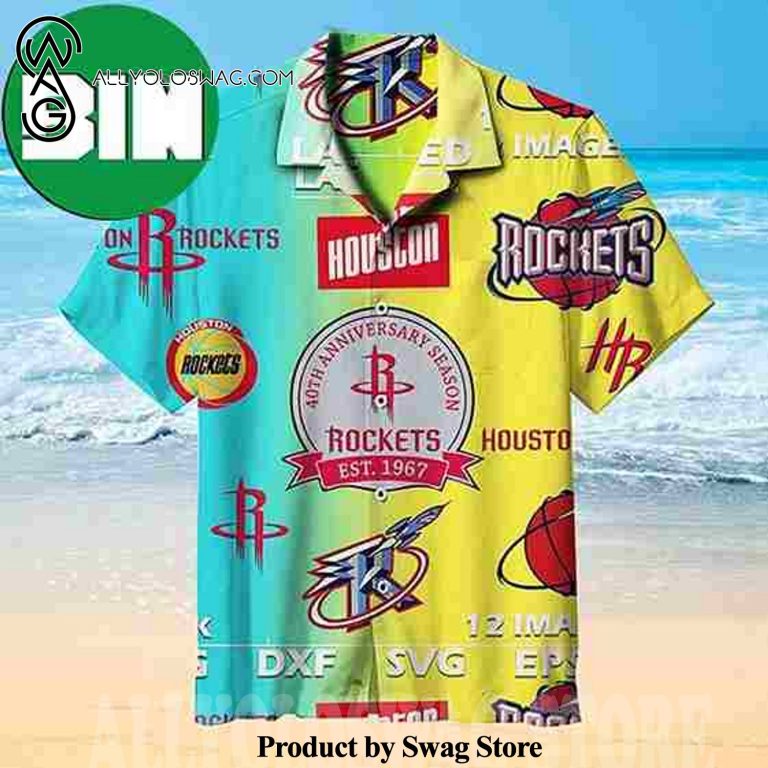 NBA 40th Anniversary Houston Rockets Summer Vibes Hawaiian Shirt was hand-tailored in the early days of fashion. This might happen in the comfort of one’s own home or at a custom tailor’s business. These stores immediately sprang up all across the islands, especially in plantation towns and Honolulu. Newly accessible fabrics from throughout the world were sold at dry goods stores, including printed silk from Japan, raw silk, batik, and rayon from the United States mainland, and cotton cloth for kimonos and yukatas.Hawaiian history had long been shaped by Asian immigrants, and apparel designs reflected this. Short- and long-sleeved shirts, as well as women’s skirts, were created using pre-printed textiles from China and Japan and were based on Asian clothing styles. These bright blouses and dresses were the forerunners of today’s Aloha attire. On the islands, we say “ono” to describe something that is pleasantly cool.