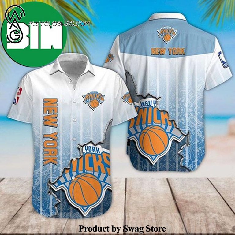 NBA New York Knicks Summer Vibes Hawaiian Shirt was hand-tailored in the early days of fashion. This might happen in the comfort of one’s own home or at a custom tailor’s business. These stores immediately sprang up all across the islands, especially in plantation towns and Honolulu. Newly accessible fabrics from throughout the world were sold at dry goods stores, including printed silk from Japan, raw silk, batik, and rayon from the United States mainland, and cotton cloth for kimonos and yukatas.Hawaiian history had long been shaped by Asian immigrants, and apparel designs reflected this. Short- and long-sleeved shirts, as well as women’s skirts, were created using pre-printed textiles from China and Japan and were based on Asian clothing styles. These bright blouses and dresses were the forerunners of today’s Aloha attire. On the islands, we say “ono” to describe something that is pleasantly cool.