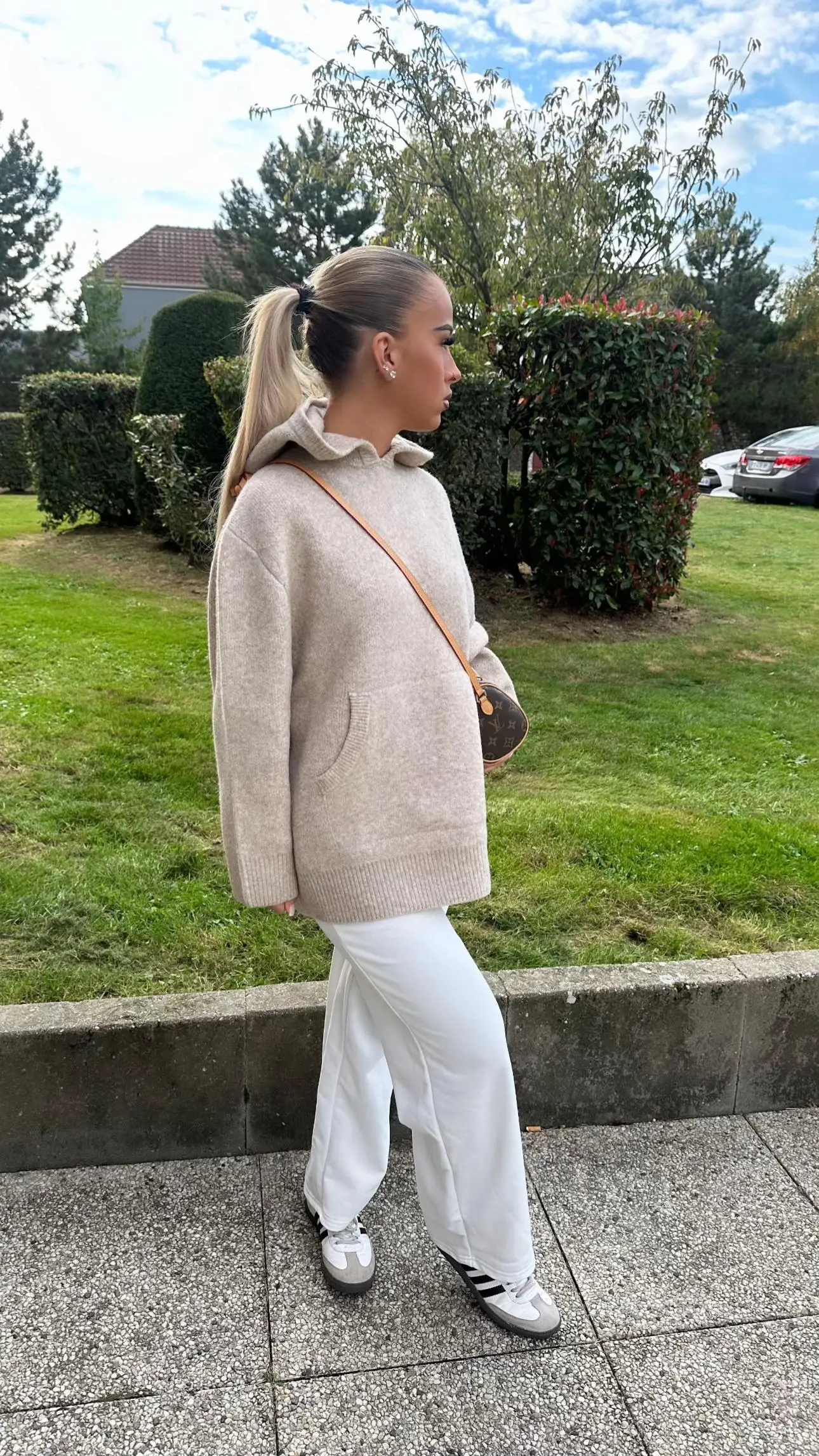 What material is the sweater made of? It is made from a premium knit blend (e.g., acrylic/polyester blend) designed for warmth, breathability, and long-lasting wear.