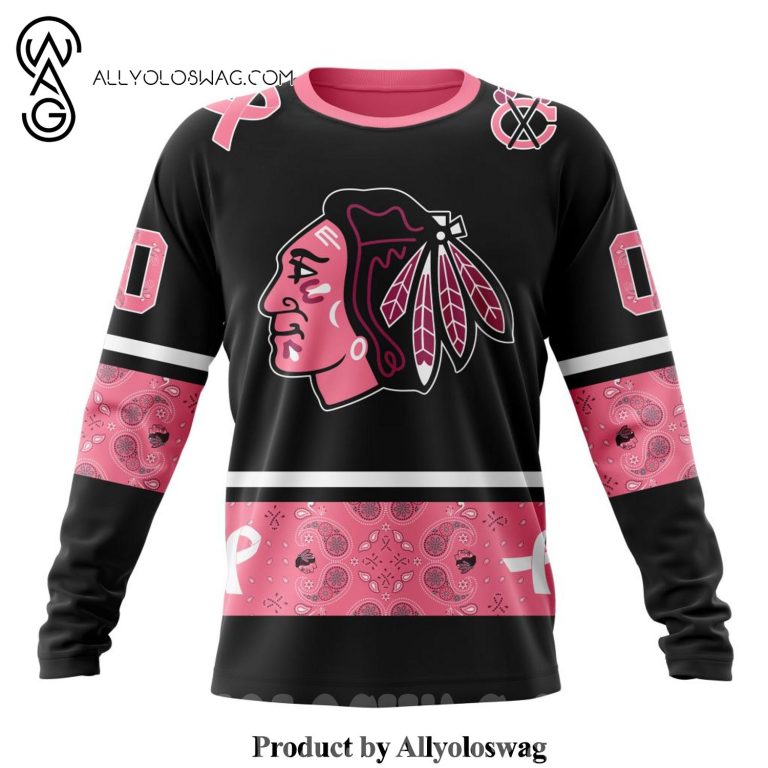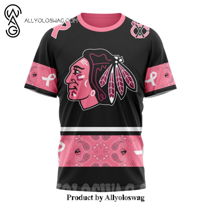 Product description information NHL Chicago BlackHawks With Paisley In October We Wear Pink Breast Cancer Full Printing Shirt