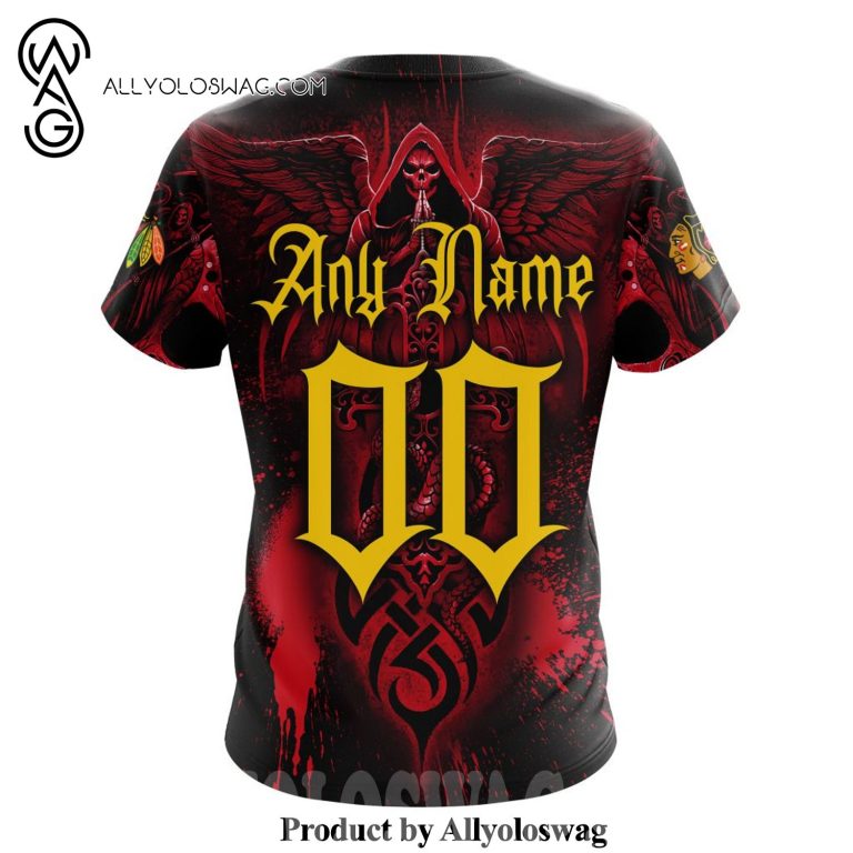 NOTE: NHL Chicago Blackhawks With Skull Art For Fans Full Printing Shirt