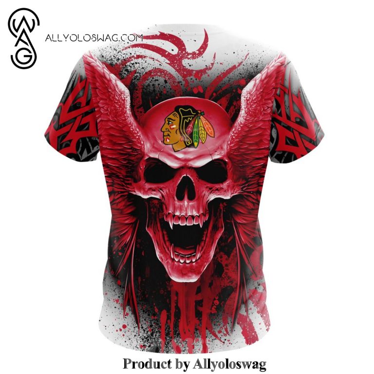 NOTE: NHL Chicago Blackhawks With Skull Art Full Printing Shirt