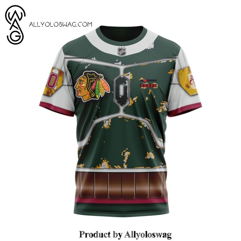 NOTE: NHL Chicago BlackHawks X Boba Fett’s Armor Design For Star Wars Fourth Of July Full Printing Shirt