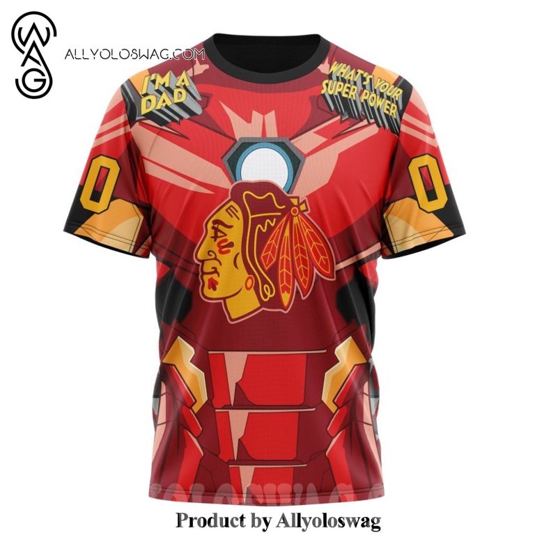 NHL Chicago BlackHawks X Iron Man Design For Father Day Full Printing Shirt