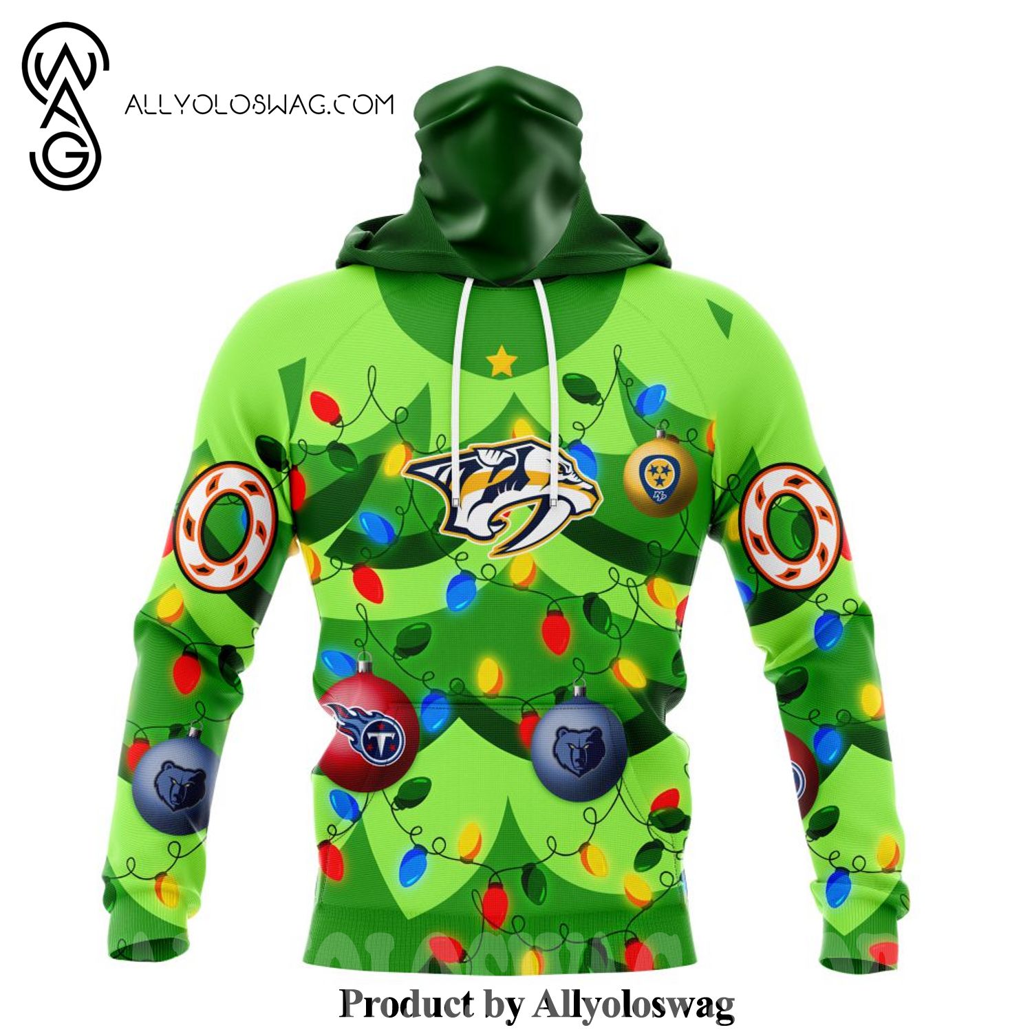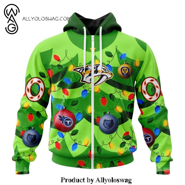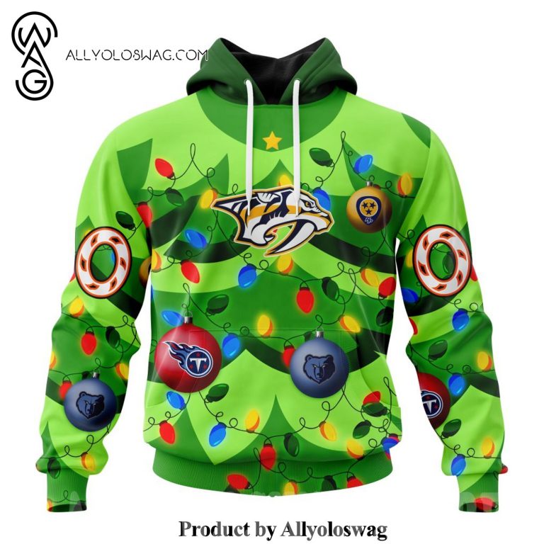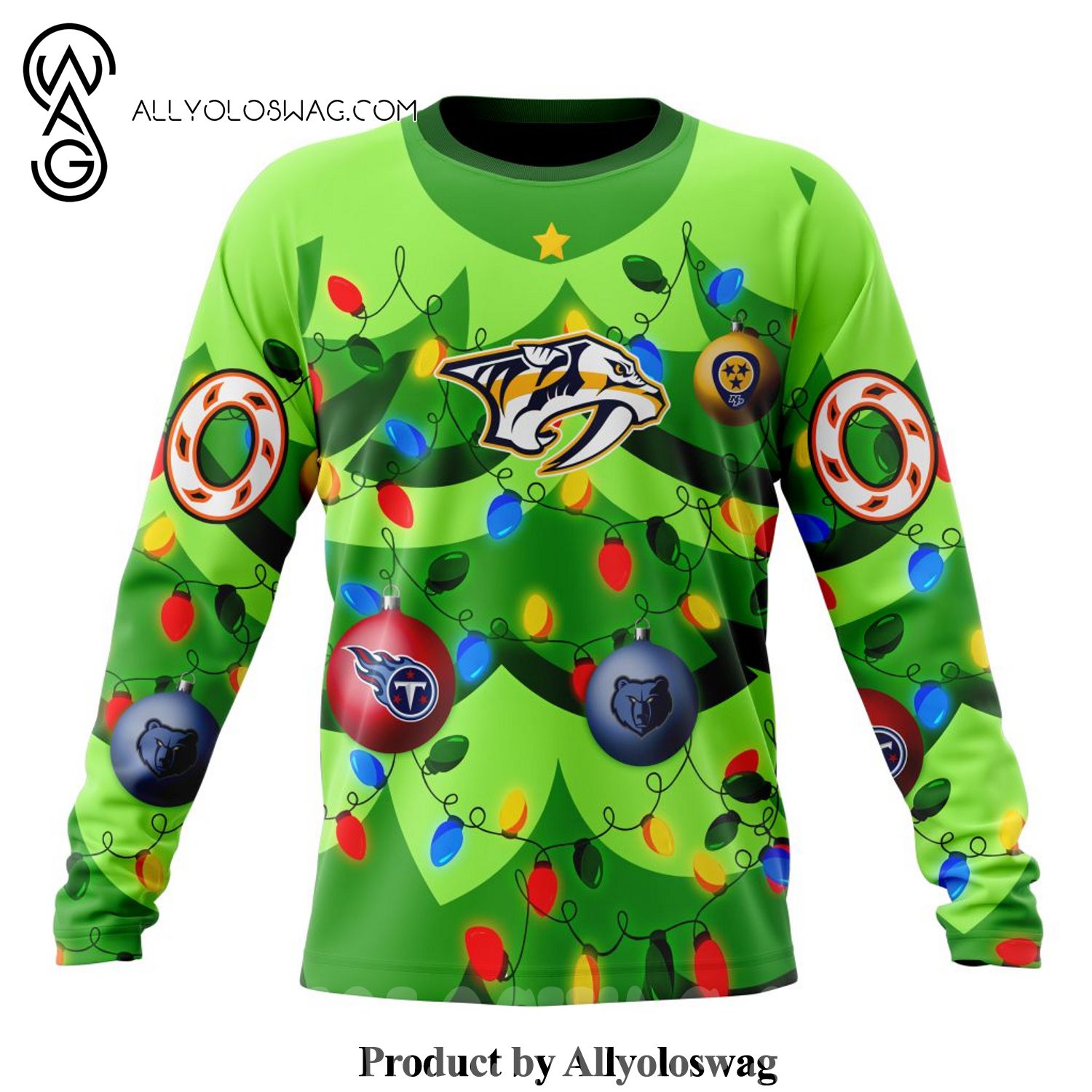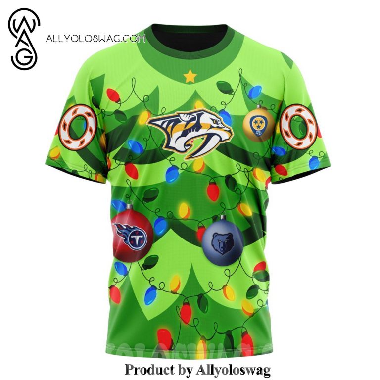 NOTE: NHL Nashville Predators With Christmass Tree Color And City’s Sport Teams Full Printing Shirt