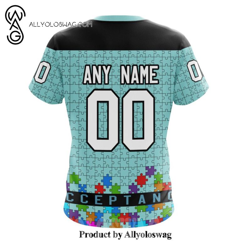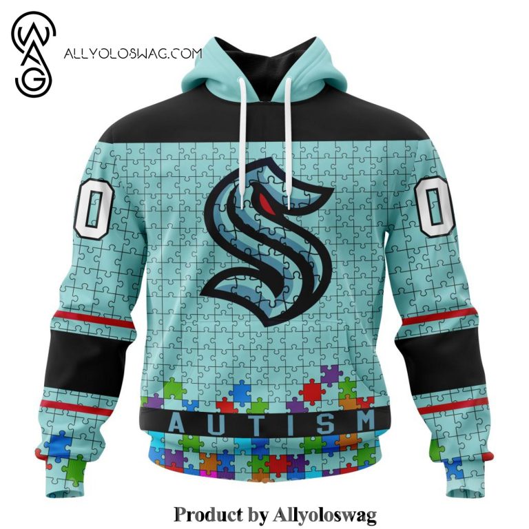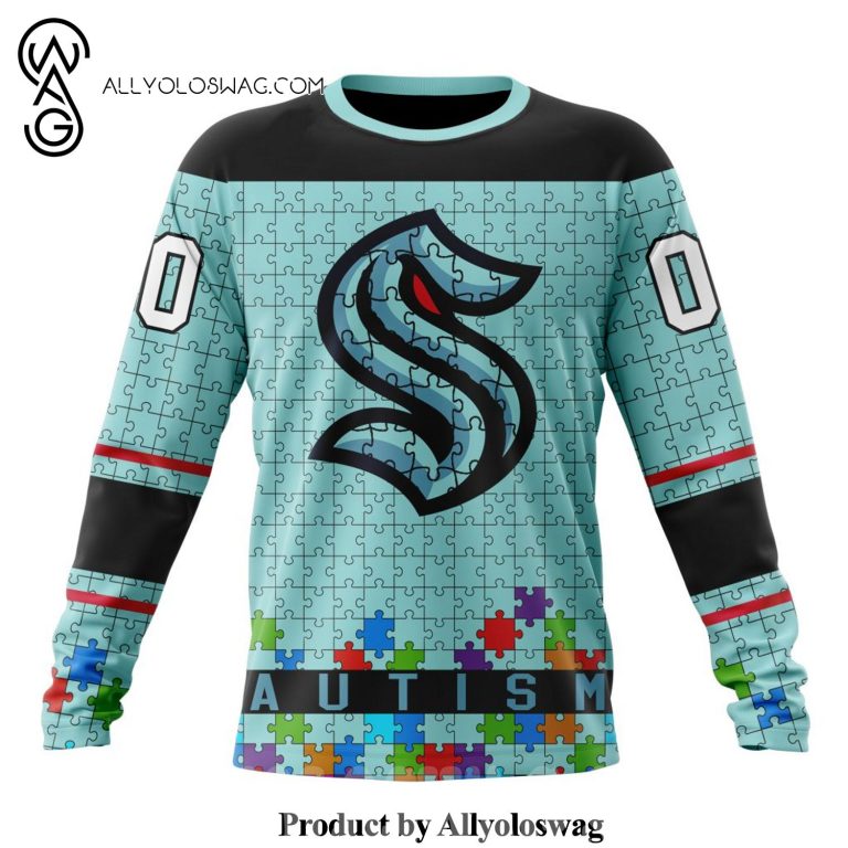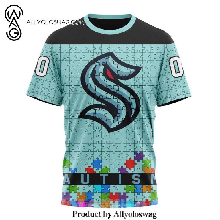 NOTE: NHL Seattle Kraken Hockey Fights Against Autism Full Printing Shirt