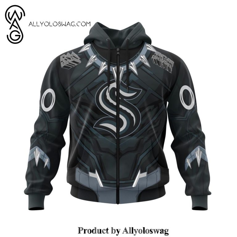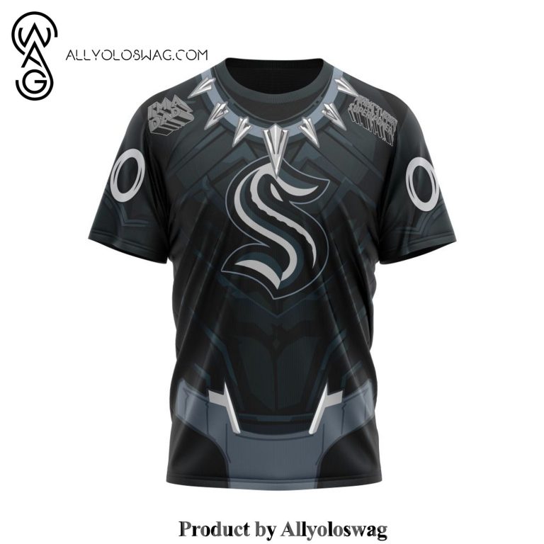 NHL Seattle Kraken X Black Panther Design For Father Day Full Printing Shirt