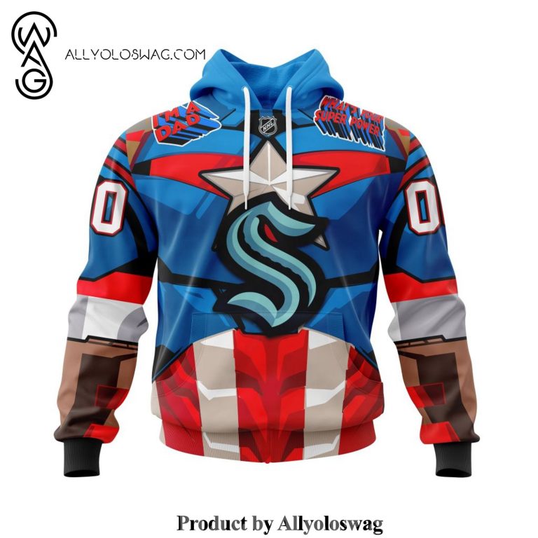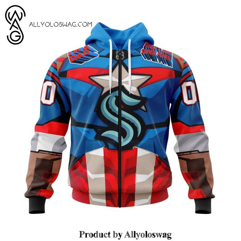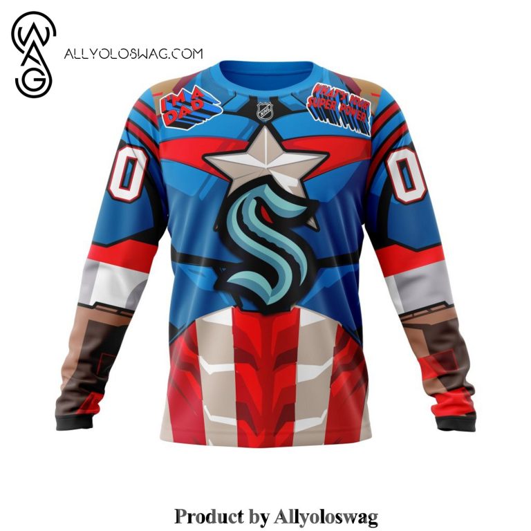 The complete guide to NHL Seattle Kraken X Captain America Design For Father Day Full Printing Shirt
