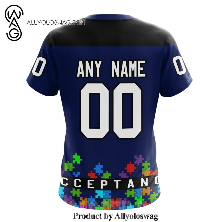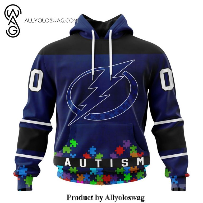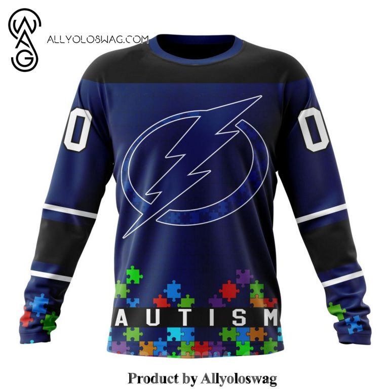 NOTE: NHL Tampa Bay Lightning Hockey Fights Against Autism Full Printing Shirt