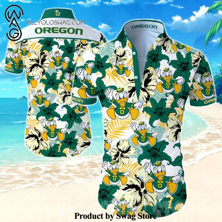 Oregon Ducks Holiday Time Hawaiian Shirt was hand-tailored in the early days of fashion. This might happen in the comfort of one’s own home or at a custom tailor’s business. These stores immediately sprang up all across the islands, especially in plantation towns and Honolulu. Newly accessible fabrics from throughout the world were sold at dry goods stores, including printed silk from Japan, raw silk, batik, and rayon from the United States mainland, and cotton cloth for kimonos and yukatas.Hawaiian history had long been shaped by Asian immigrants, and apparel designs reflected this. Short- and long-sleeved shirts, as well as women’s skirts, were created using pre-printed textiles from China and Japan and were based on Asian clothing styles. These bright blouses and dresses were the forerunners of today’s Aloha attire. On the islands, we say “ono” to describe something that is pleasantly cool.