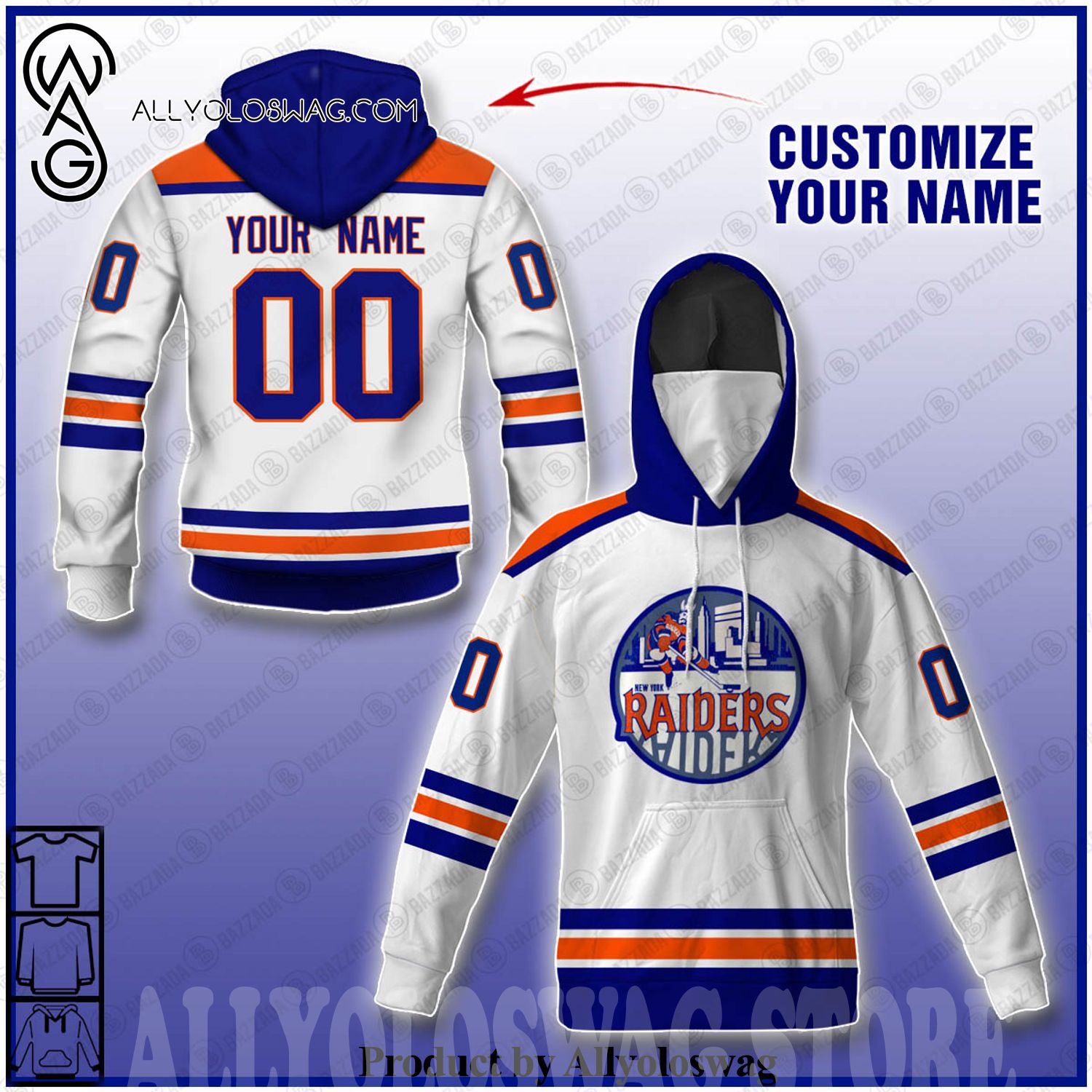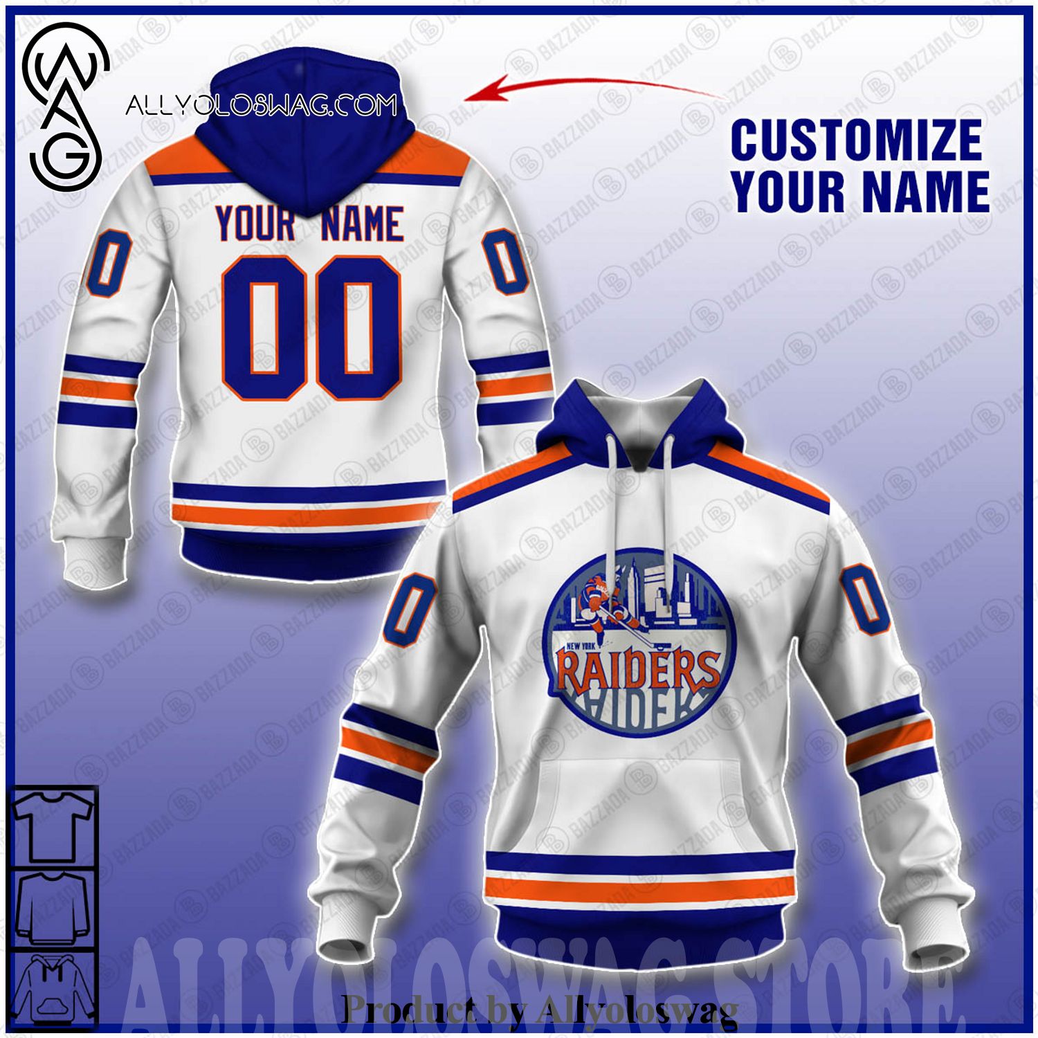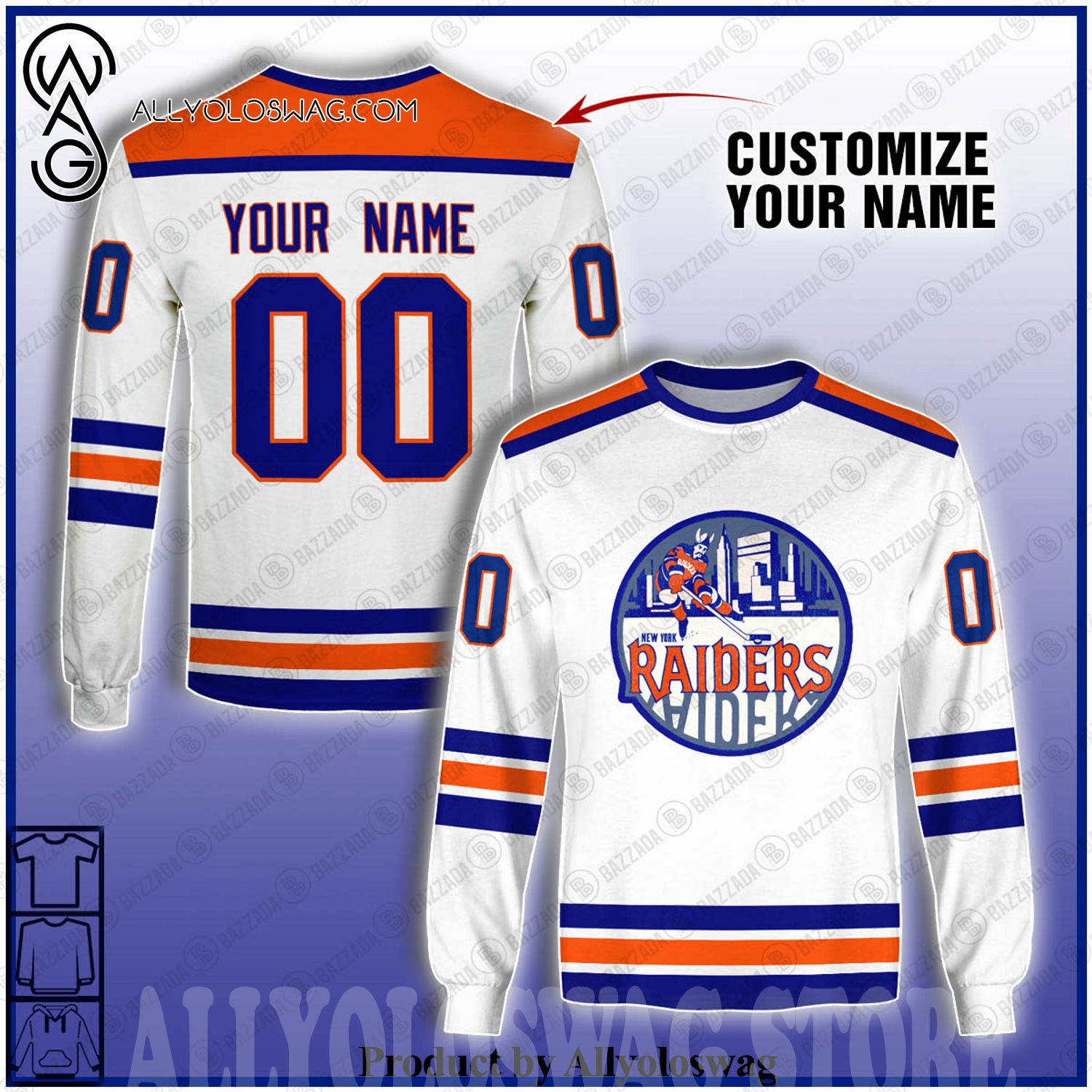NOTE: Personalize WHA retro New York Raiders White 1973 All Over Printed Shirt