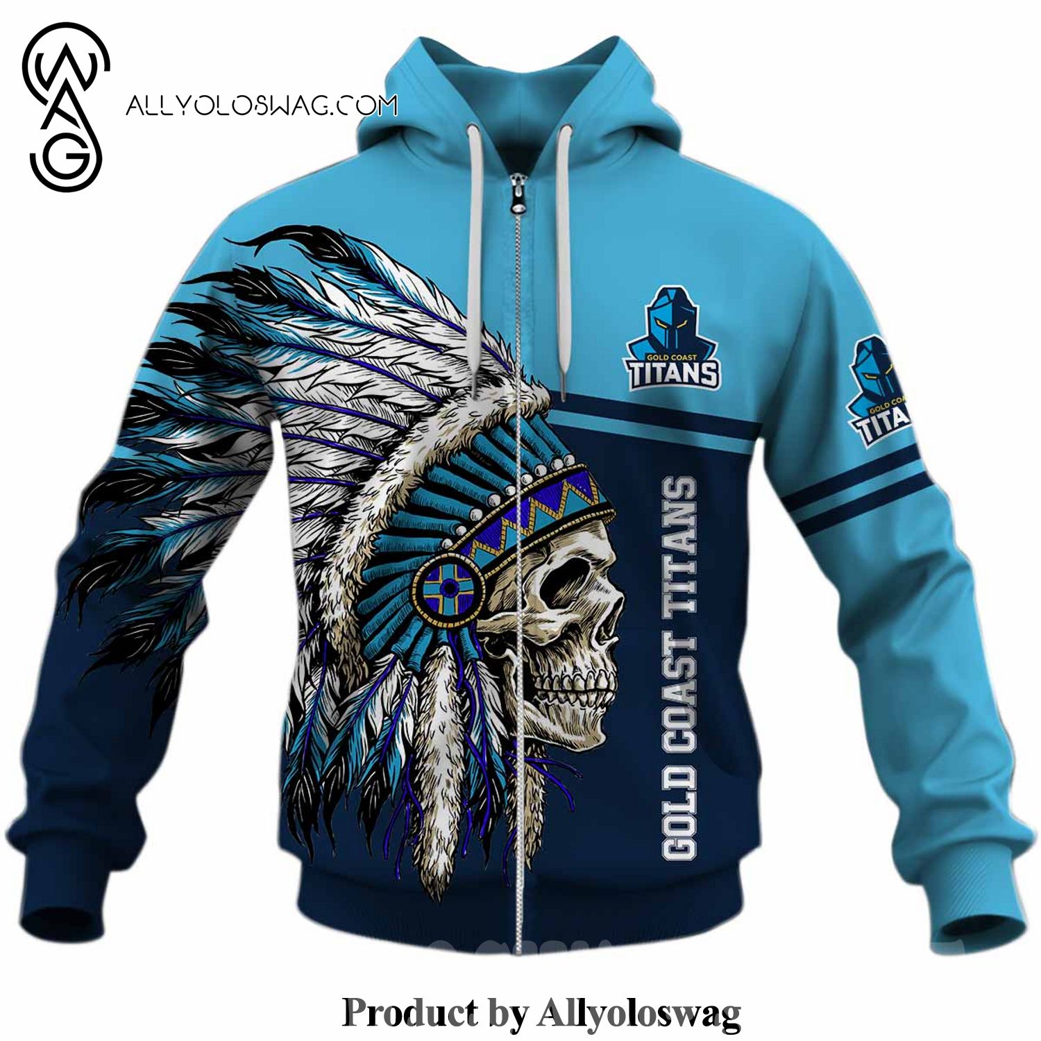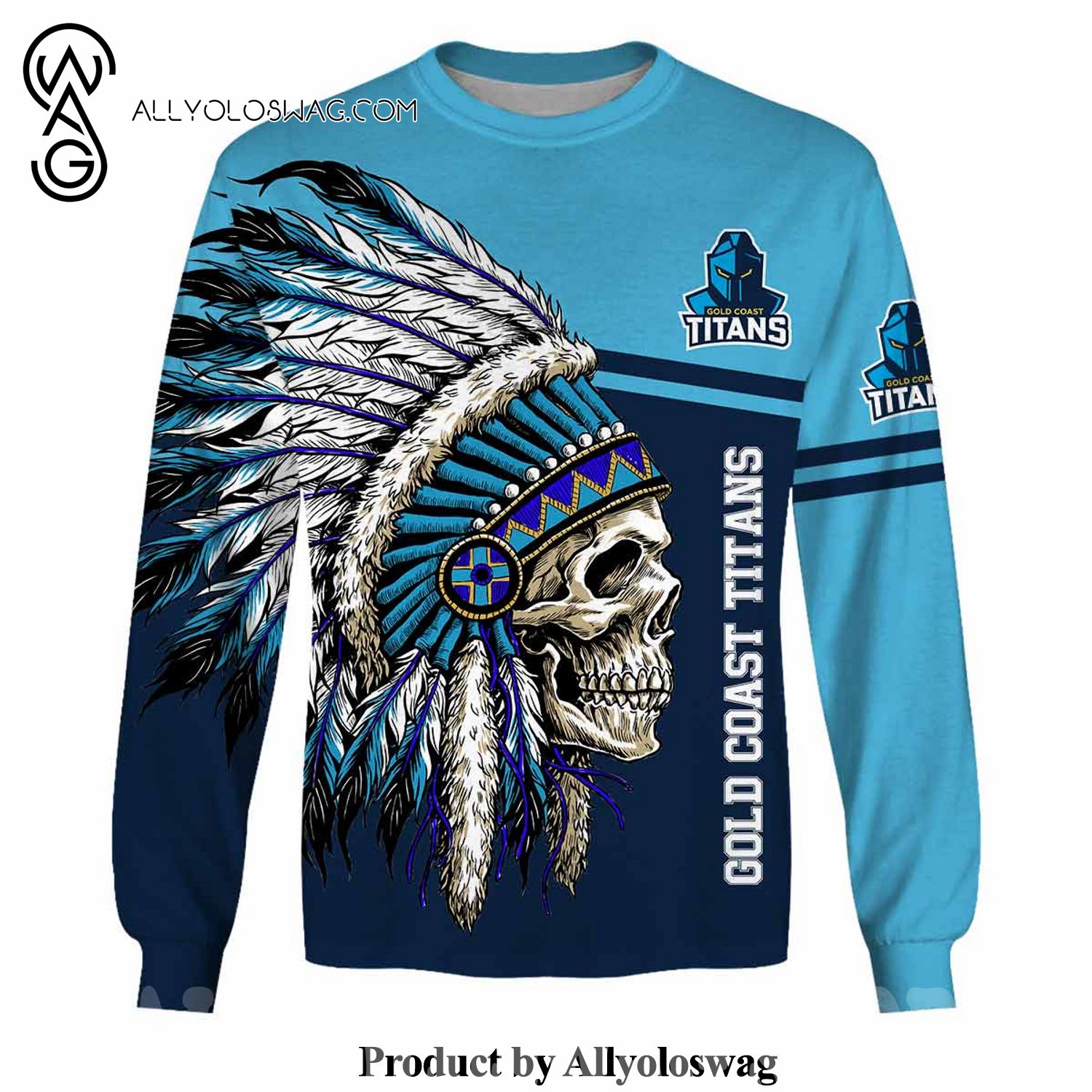 NOTE: Personalized NRL Gold Coast Titans Native Skull For Fans Full Printing Shirt