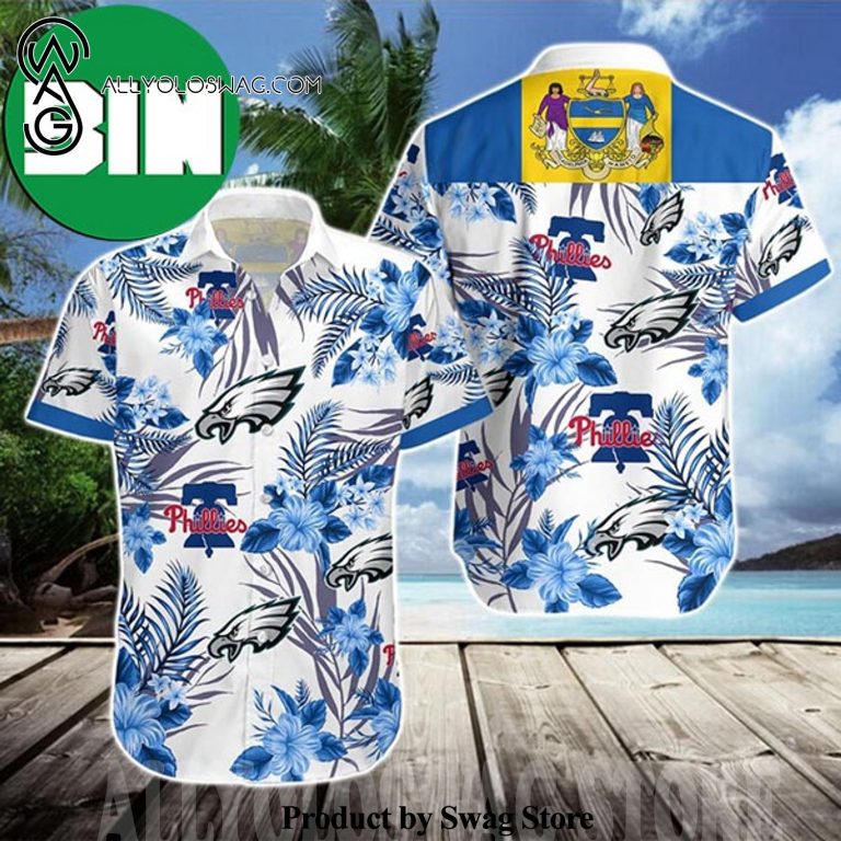 Philadelphia Eagles Phillies Tropical Summer Vibes Hawaiian Shirt was hand-tailored in the early days of fashion. This might happen in the comfort of one’s own home or at a custom tailor’s business. These stores immediately sprang up all across the islands, especially in plantation towns and Honolulu. Newly accessible fabrics from throughout the world were sold at dry goods stores, including printed silk from Japan, raw silk, batik, and rayon from the United States mainland, and cotton cloth for kimonos and yukatas.Hawaiian history had long been shaped by Asian immigrants, and apparel designs reflected this. Short- and long-sleeved shirts, as well as women’s skirts, were created using pre-printed textiles from China and Japan and were based on Asian clothing styles. These bright blouses and dresses were the forerunners of today’s Aloha attire. On the islands, we say “ono” to describe something that is pleasantly cool.
