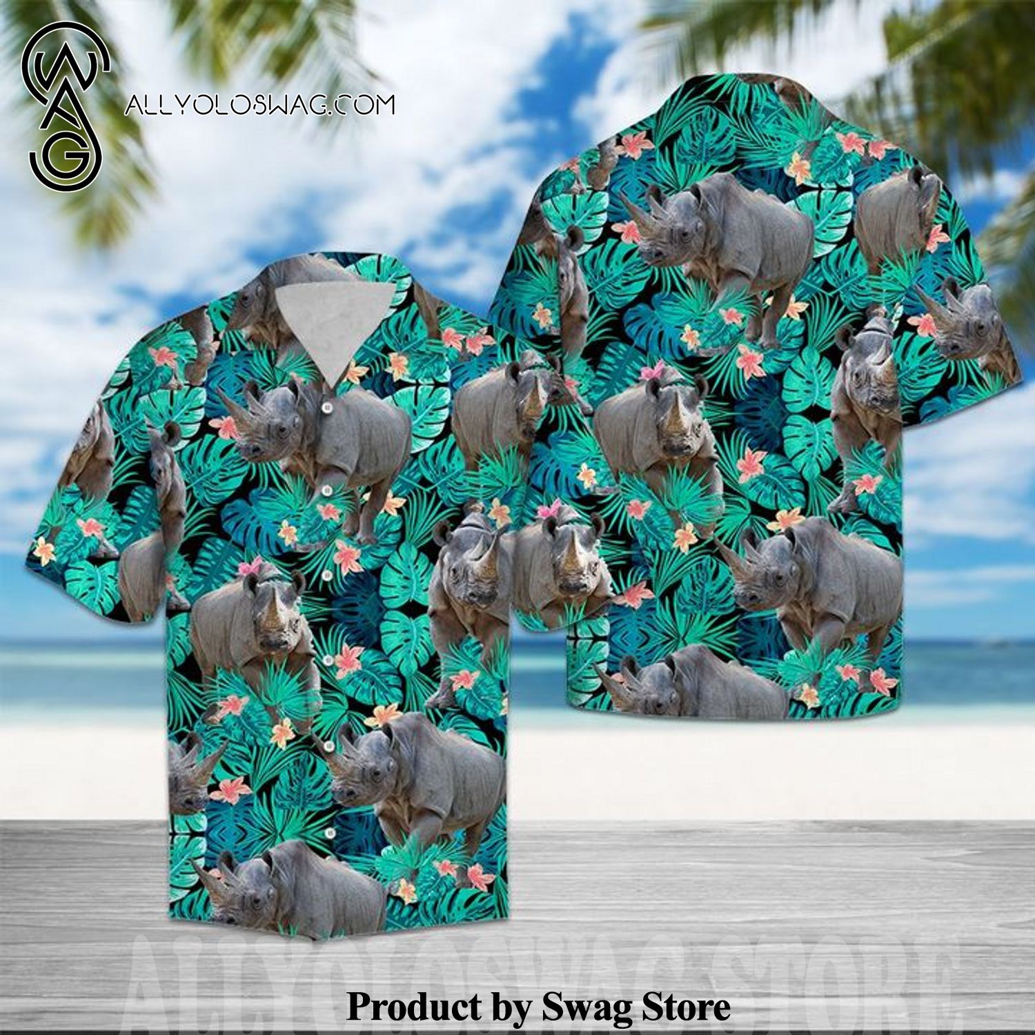 Rhinoceros Tropical All Over Printed Hawaiian Shirt