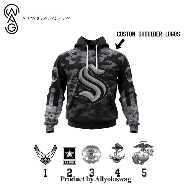 Product description information Seattle Kraken Kits With Camo Full Printing Shirt