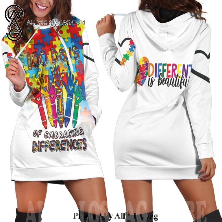[Top-selling] 100 Days Of Embracing Differences Raise Hands Autism Support Hot Outfit All Over Print Hoodie Dress